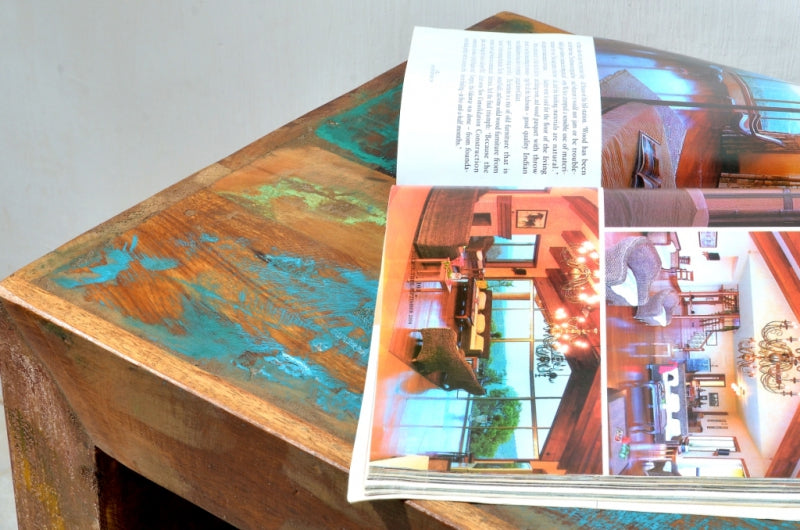 Warte nicht länger und bringe mit diesem exquisiten Couchtisch aus Altholz Eleganz und Persönlichkeit in Dein Wohnzimmer.
