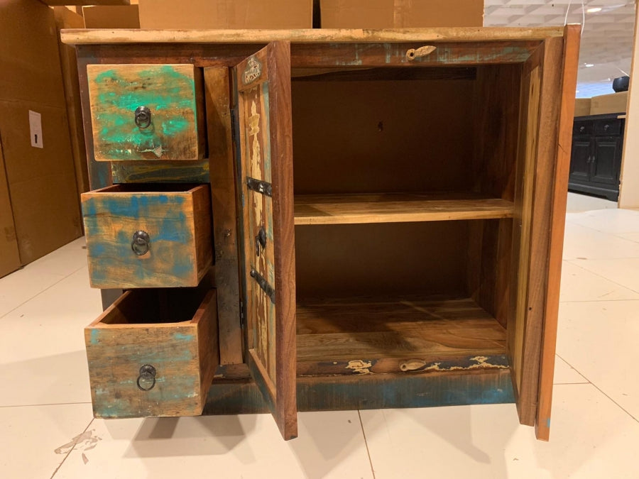 Dieser Artikel ist aus massivem Altholz. Die Farbfronten sind bei jedem Artikel individuell, da jedes Möbelstück ein Unikat ist. Die Bilder sind nur Beispielbilder. Jedes Möbelstück hat unterschiedliche Farben.