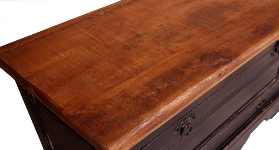 Die Artikel haben eine individuelle Struktur des Holzes. (Astlöcher, Risse, Farbunterschiede durch das Lasieren per Hand, Farbspiel bzw. unterschiedliche Maserungen gehören zu diesem Naturholz-Produkt und können vorkommen). Die vorhandenen Gebrauchsspuren geben einen kolonialen Charakter und sind bewusst gewollt. Tolle schwere Ware, für Liebhaber und nicht für Perfektionisten.