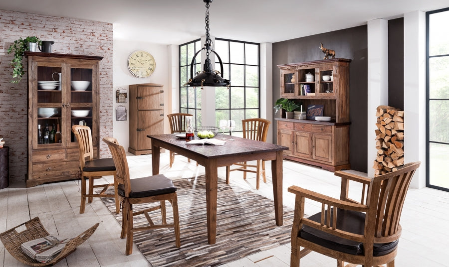 Dieses Möbelstück wurde von traditionellen Handwerkern handgefertigt und hat eine Herstellungsdauer von 3 bis 4 Tagen. Der Artikel hat eine individuelle Struktur des Holzes. (Astlöcher, kleine Risse, Farbunterschiede durch das Lasieren per Hand, Farbspiel bzw. unterschiedliche Maserungen gehören zu diesem Naturholz-Produkt und können vorkommen). Die vorhandenen Gebrauchsspuren geben einen kolonialen Charakter und sind bewusst gewollt. Tolle schwere Ware für Liebhaber und nicht für Perfektionisten.