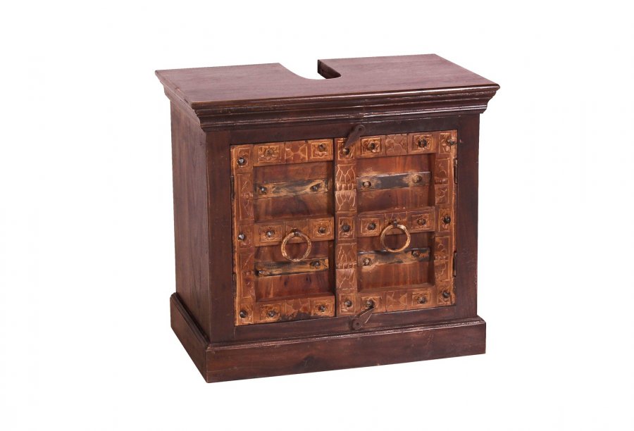 Dieser Artikel ist aus massivem recyceltem Altholz. Die aufwendigen Schnitzereien und Metallapplikationen sind in reiner Handarbeit gefertigt. Die gewollten Gebrauchsspuren und das antike Finish runden den kolonialen Gesamteindruck gekonnt ab.
