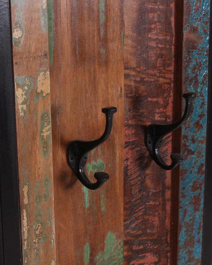 Vintage Garderobe aus recyceltem massivem Altholz und Altmetall