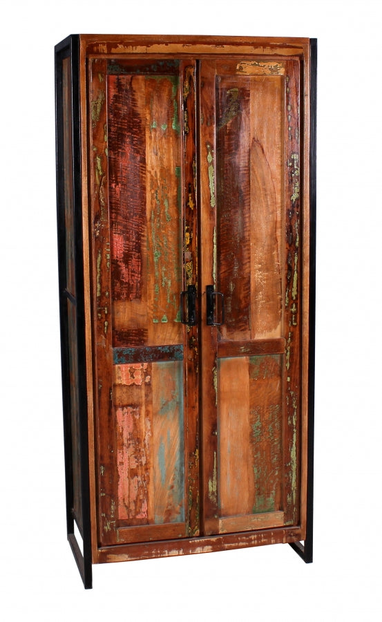 Vintage Schrank aus recyceltem massivem Altholz und Altmetall