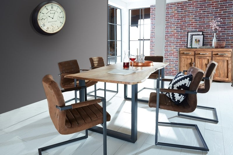 Tisch Akazienholz mit Baumkante Natur Gestell Antikschwarz 80x140cm Plattenstärke: 26cm