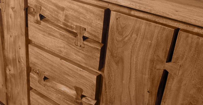 Durch Temperaturschwankungen beim Seetransport aus Indien nach Deutschland und das wechselnde Raumklima kann es vorkommen, dass das Holz arbeitet und Türen/Schubladen leicht verzogen sind, bzw. dies auch im Laufe der Zeit nach Lieferung noch geschieht. Dies ist leider nicht zu verhindern und kann von uns nicht als Reklamationsgrund anerkannt werden. Man kann es jedoch durch Abschleifen und nachlasieren wieder regulieren.