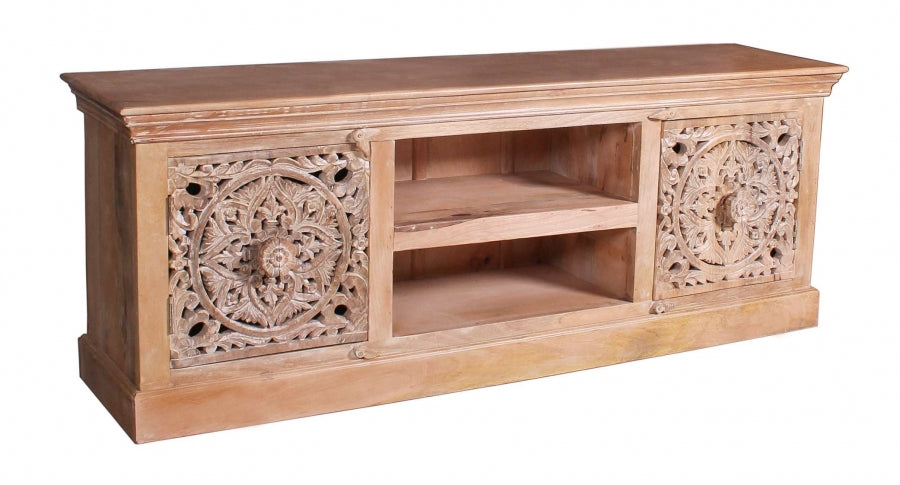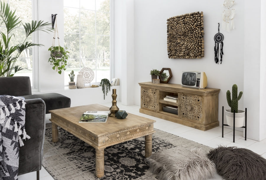 Dieser Artikel ist aus massivem Mangoholz. Verspielte Farbnuancen gehören zum Eigencharakter von Mangoholzmöbeln. Dieses Möbelstück wurde von traditionellen Handwerkern handgefertigt und hat eine Herstellungsdauer von 3 bis 4 Tagen.