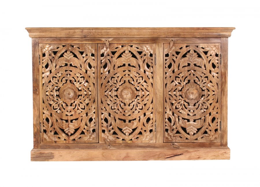 Dieser Artikel ist aus massivem Mangoholz. Verspielte Farbnuancen gehören zum Eigencharakter von Mangoholzmöbeln. Dieses Möbelstück wurde von traditionellen Handwerkern handgefertigt und hat eine Herstellungsdauer von 3 bis 4 Tagen.