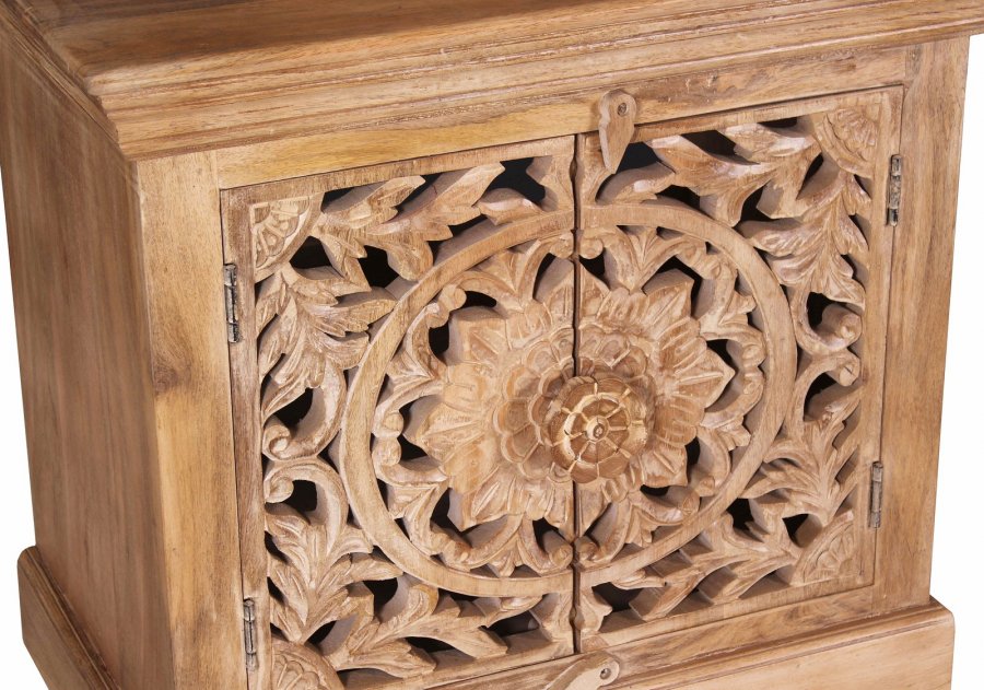 Dieser Artikel ist aus massivem Mangoholz. Verspielte Farbnuancen gehören zum Eigencharakter von Mangoholzmöbeln. Dieses Möbelstück wurde von traditionellen Handwerkern handgefertigt und hat eine Herstellungsdauer von 3 bis 4 Tagen.