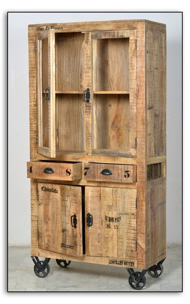 Vintage Vitrine auf Rollen 90x180x40cm Massiv