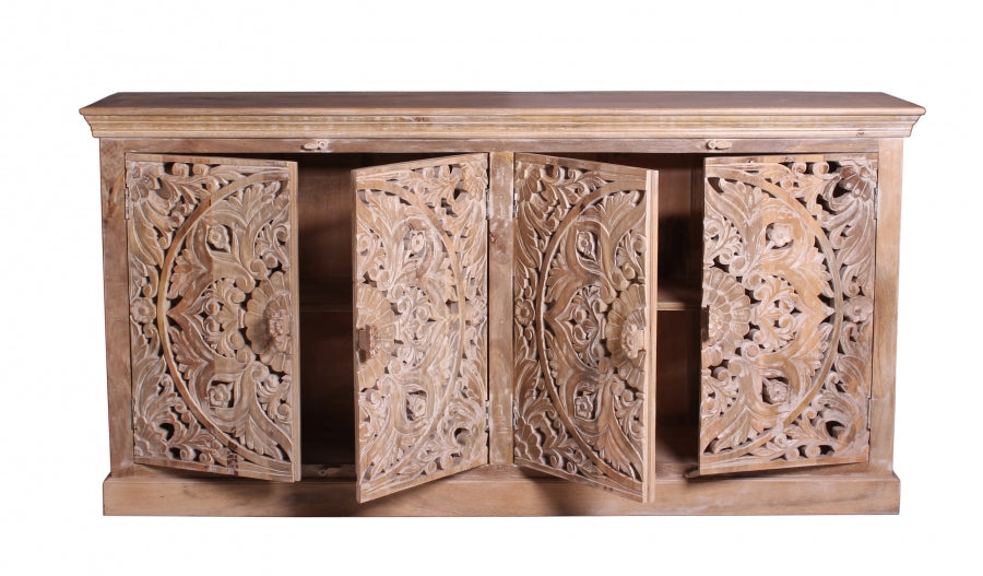 Dieser Artikel ist aus massivem Mangoholz. Verspielte Farbnuancen gehören zum Eigencharakter von Mangoholzmöbeln. Dieses Möbelstück wurde von traditionellen Handwerkern handgefertigt und hat eine Herstellungsdauer von 3 bis 4 Tagen.