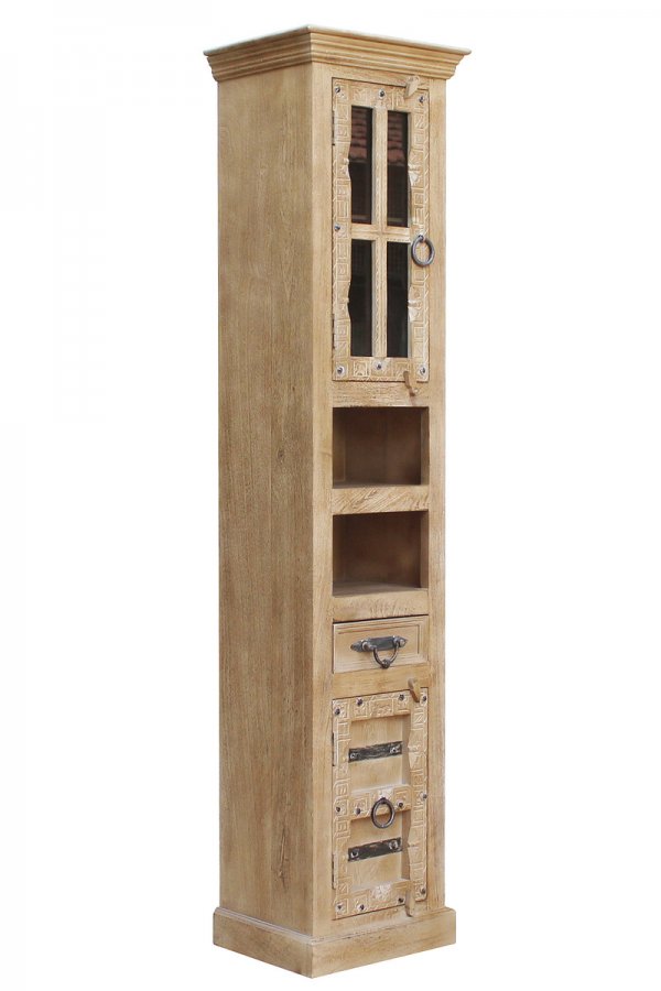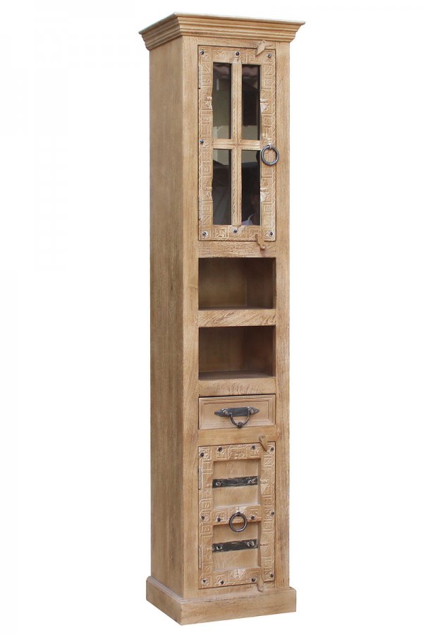 Vintage Hochschrank 44x188x35cm Massiv Mango natur