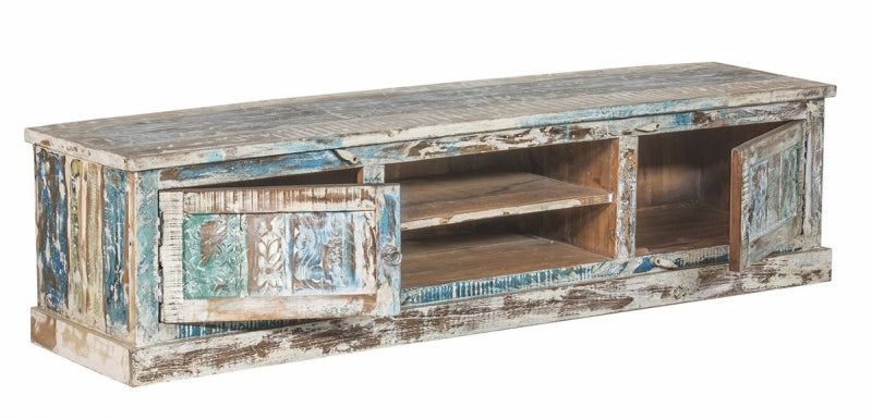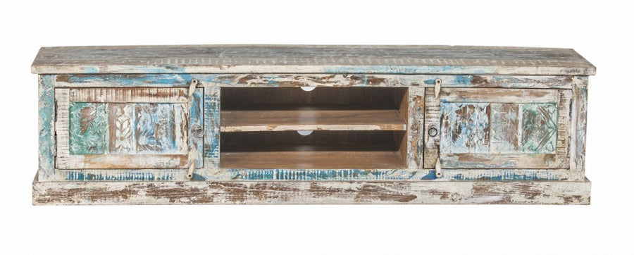 Entdecken Sie die perfekte Verbindung von Funktionalität und unverwechselbarem Stil mit unserem Shabby Chic TV-Board aus massivem Altholz.