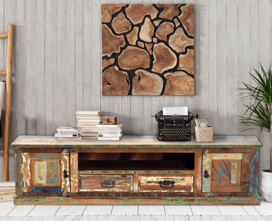 Shabby Chic TV Board / Lowboard aus massivem Altholz