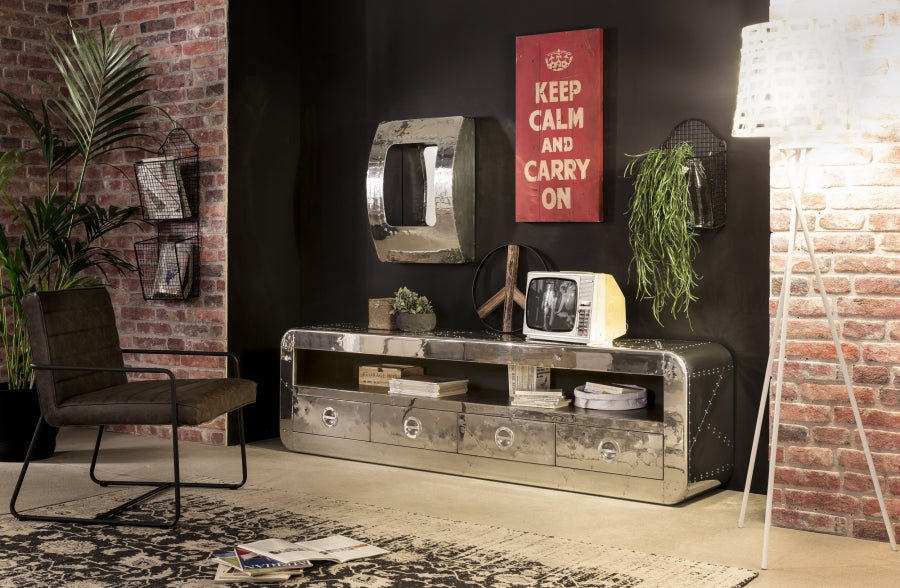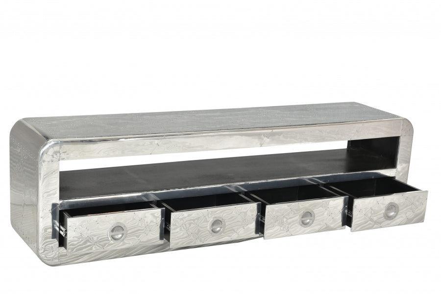 Silber Lowboard aus Mangoholz mit Alu 200x56x40cm