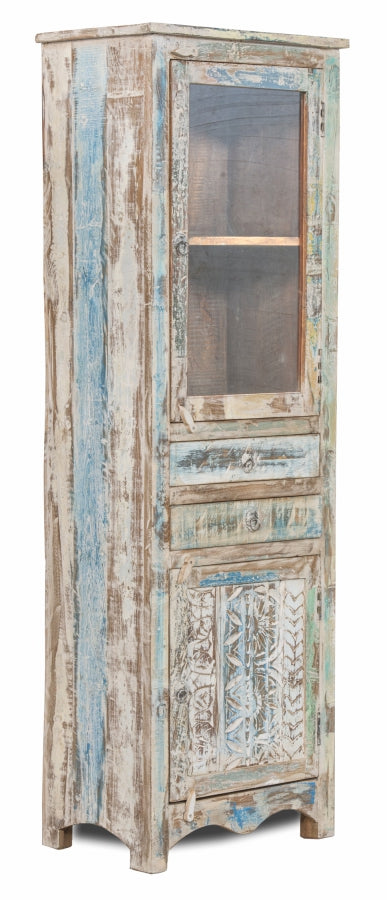Shabby Chic Möbel Vitrine 60x185x40cm Massiv