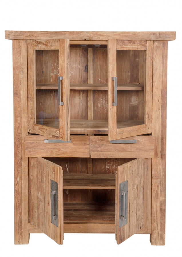 Kolonial Möbel Vitrine 98x183x44cm Akazie Massiv