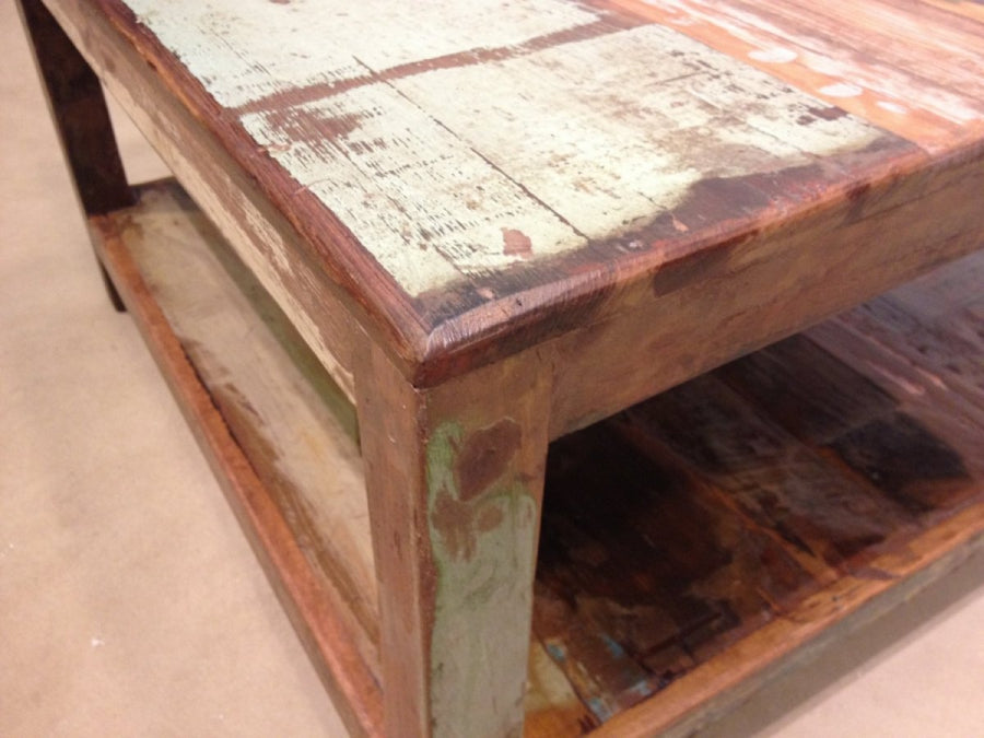 Ein Meisterstück vergangener Zeiten: Der Vintage Couchtisch aus massivem Altholz"